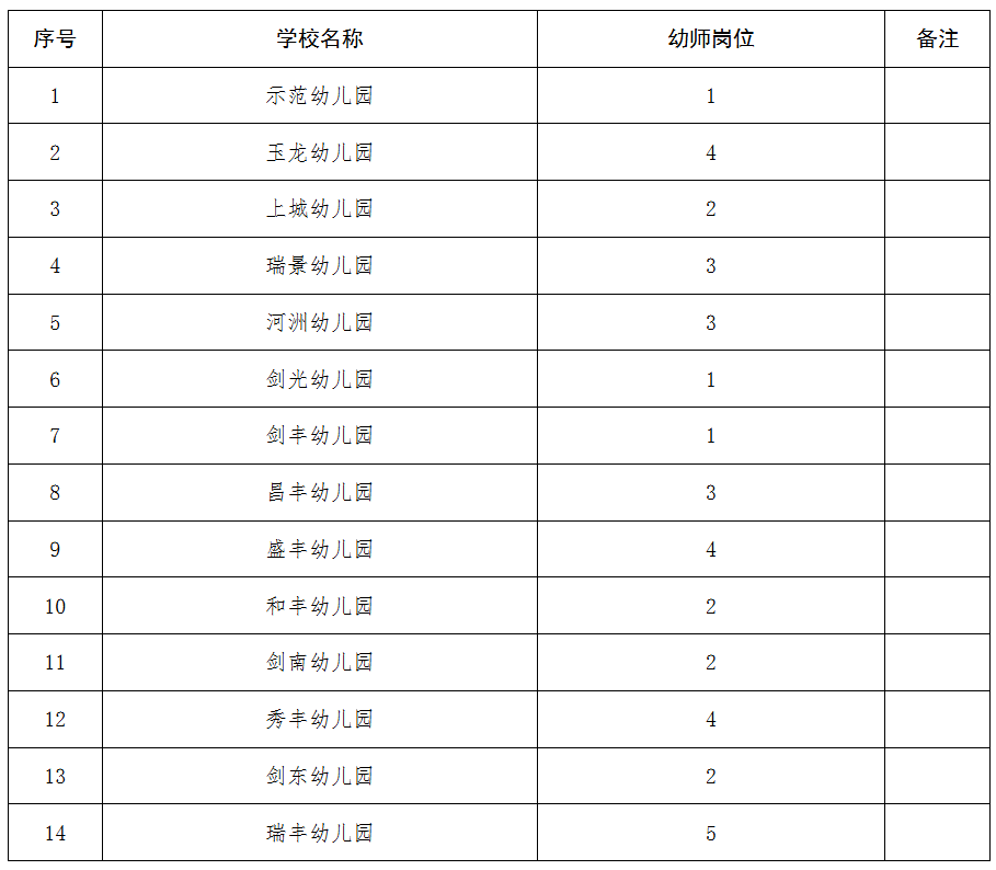 四、2025年从农村幼儿园选调教师到城区幼儿园任教37个岗位安排见下表。
